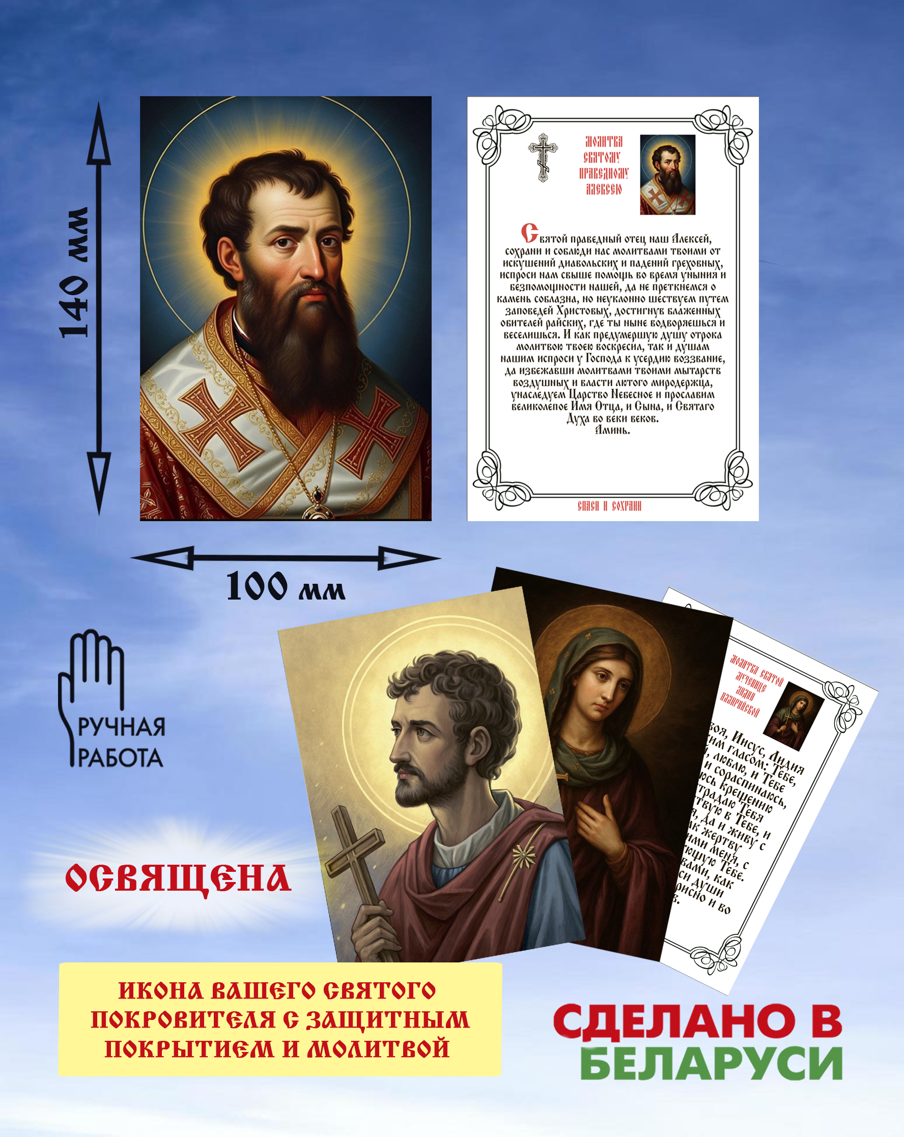 Икона изготавливается при храме белорусскими ремесленниками и освящается на ВАШЕ ИМЯ. Имеет ламинированное покрытие с обеих сторон.